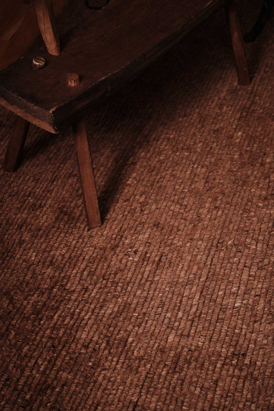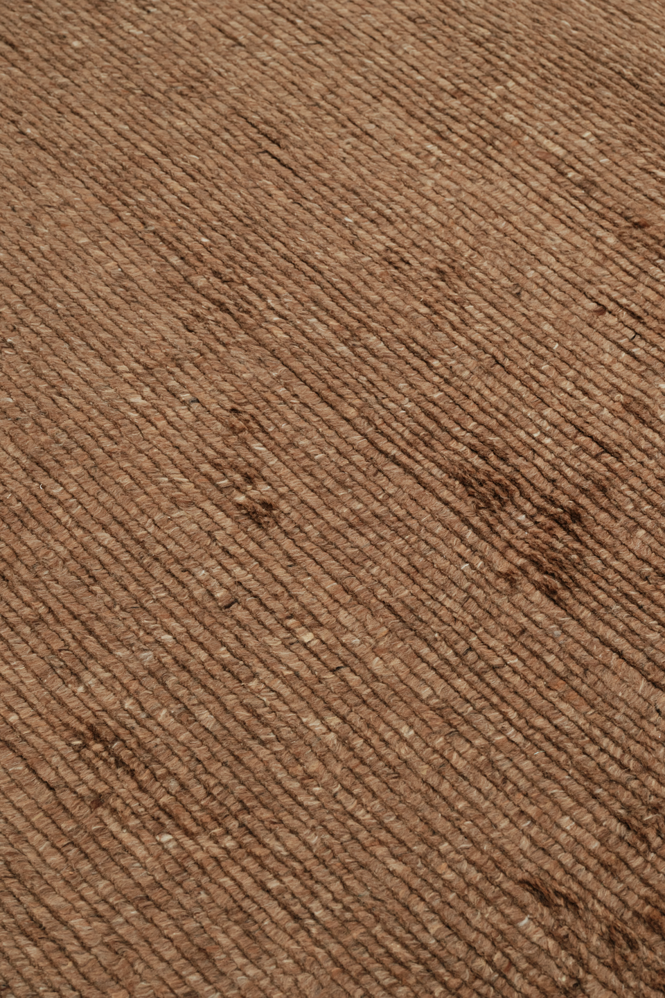Handwoven in undyed New Zealand, The Ridge Stone Rug showcases organic variations in color. Layering a flatwoven dark graphite base with soft rows of warm sepia cut pile, it captures the rising contours of natural landscapes with stripe-like linear ridges; alternating textures and the luxuriously shaggy pile height create sculptural softness and tactile depth.